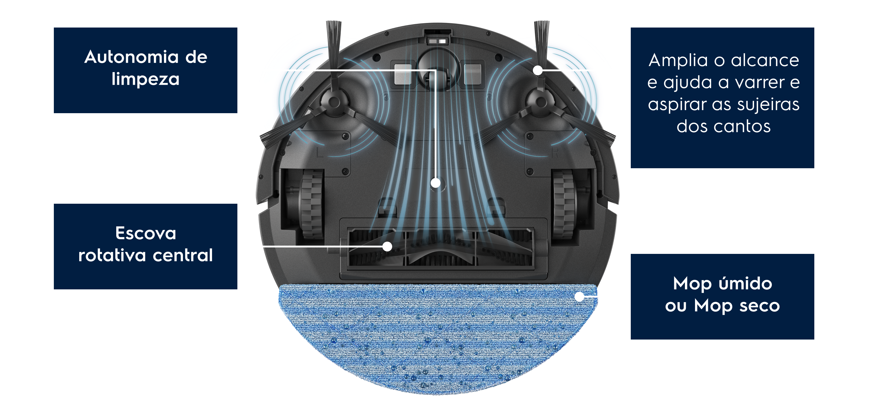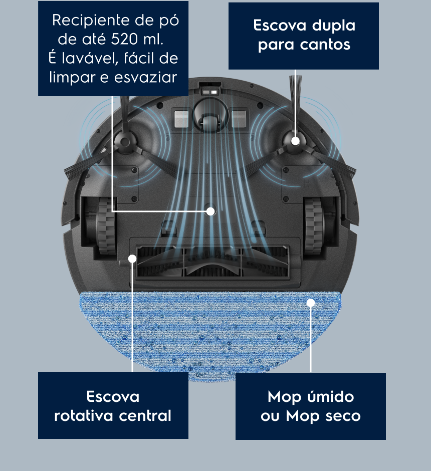 Varre as sujeiras, aspira e passa Mop úmido