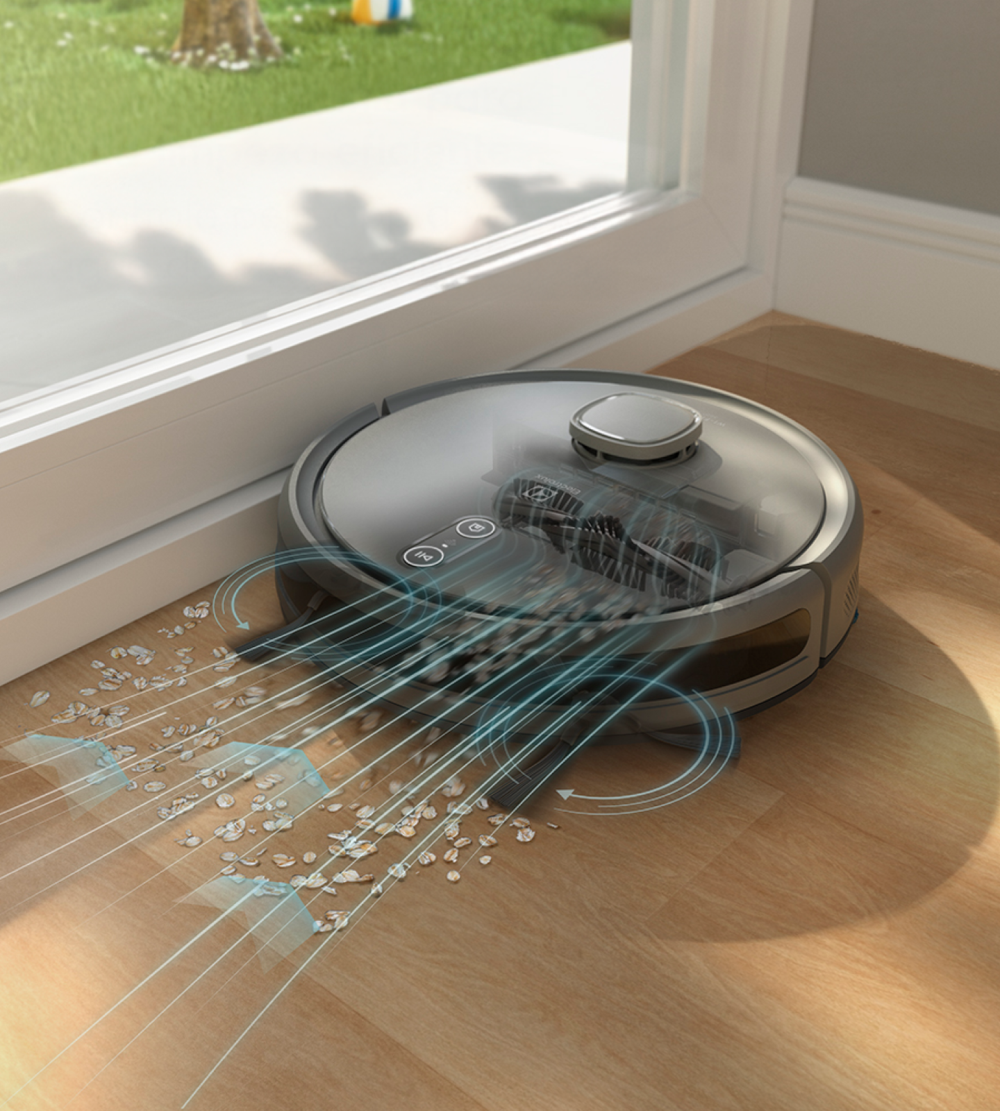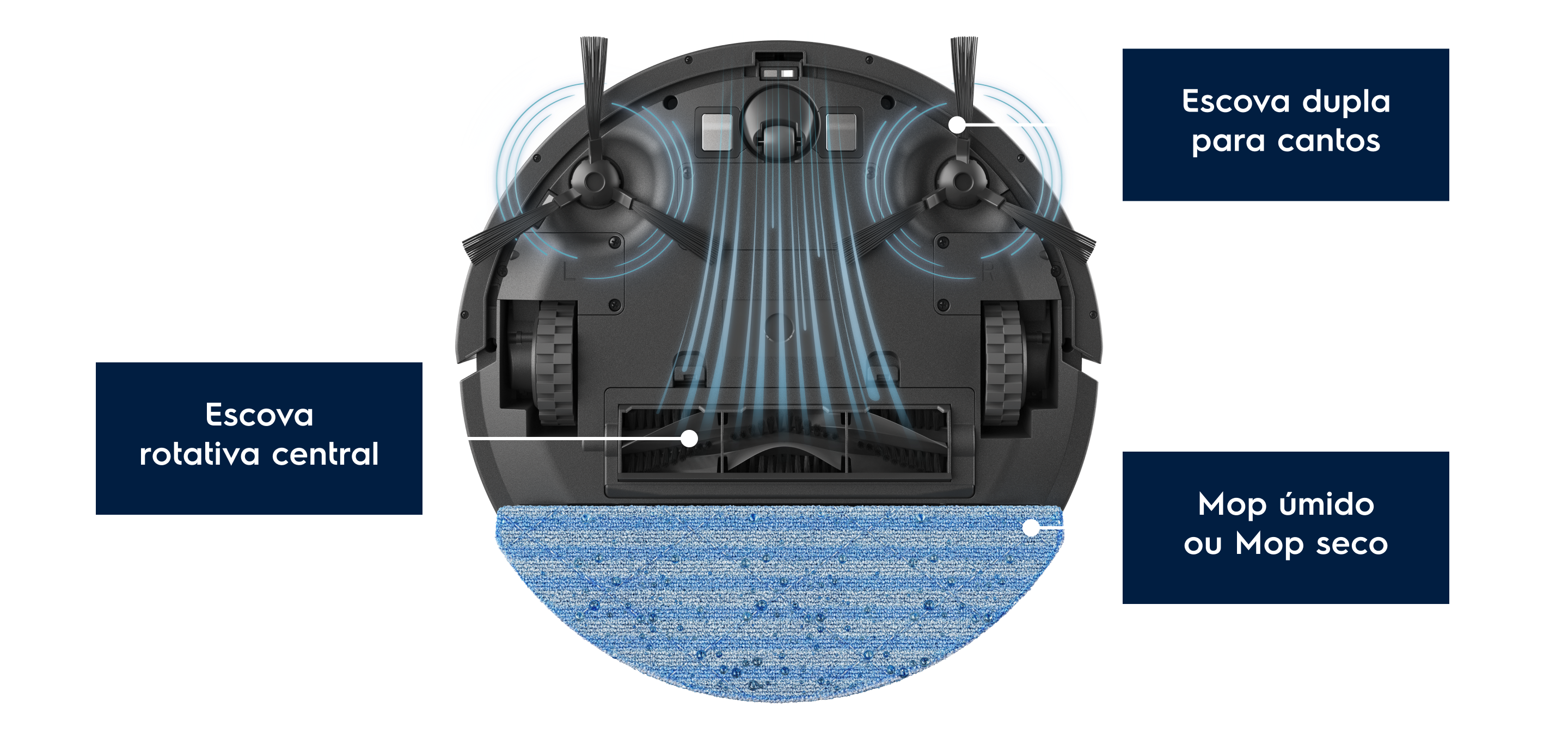 Varre as sujeiras, aspira e passa Mop úmido