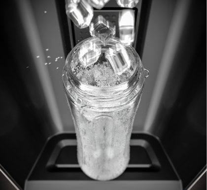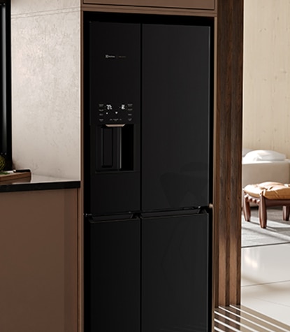 Água e gelo em cubos, filtrados e prontos para o consumo a qualquer hora, direto da porta da geladeira.