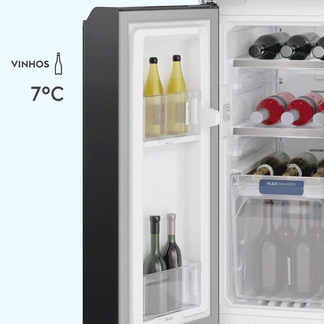 Amplia o espaço do freezer ou da geladeira com a temperatura ideal de preservação para cada tipo de alimento e bebida. A temperatura variável vai de freezer (-23°C) à geladeira (7°C).