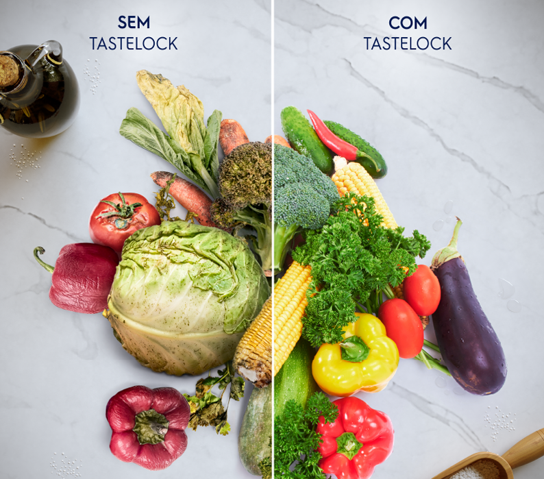 Absorve até 90%5 do gás etileno, para desacelar o amadurecimento de frutas e vegetais e deixá-los mais frescos por mais tempo.
